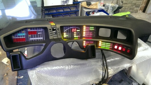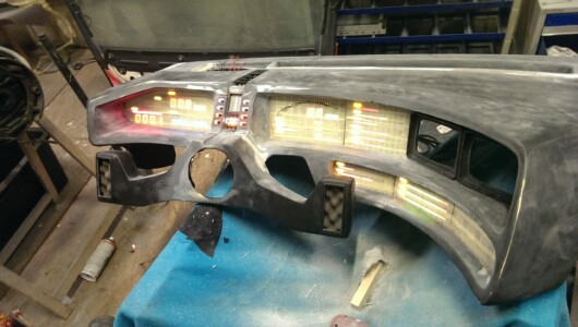 2016 war es endlich soweit: Ein Nachbau von KITTs Armaturenbrett fand seinen Weg in mein Replika. Zu diesem Zweck besuchte ich Yann in Filderstadt und wir schlossen uns zu Dritt für 10 Tage in seiner Garage ein und sägten, schliffen, löteten, laminierten was das Zeug hielt! Bis zu 14 Stunden am Tag. Es war eine unfassbare Arbeit, aber tatsächlich mit die schönste Bastelzeit, die man sich vorstellen kann! Am Ende war es dann geschafft und es war ein unfassbar GEILES Gefühl, zum ersten Mal auf den Power-Button zu drücken und all die LEDs und Anzeigen blinken zu sehen.